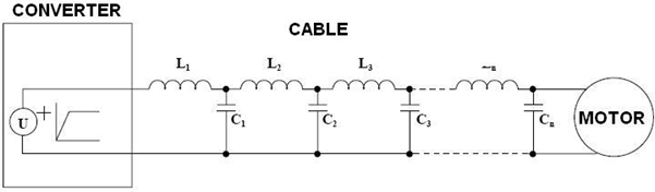 Dây dẫn và động cơ có thể được xem như là một mạch cộng hưởng được kích bởi các xung vuông của biến tần. khi các giá trị R, L và C được cấp các xung quá áp (VDC ≈ Vin), mạch đáp ứng với những kích thích này thành “overshoot”. Các overshoot này tác động đặc biệt lên lớp cách điện bên trong của cuộn dây ngẫu nhiên nào đó và phụ thuộc vào các yếu tố như: thời gian tăng của xung áp (rise time), chiều dài và loại dây dẫn, thời gian ngắn nhất giữa các xung liên tục, tần số sóng mang (switching frequency) và vận hành nhiều động cơ (1 biến tần điều khiển nhiều động cơ điện).
