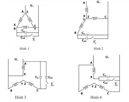 - Các sơ đồ nguyên lý chuyển đổi đấu motor 3 pha thành 1 pha
