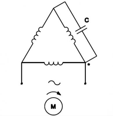 Trên thực tế, Động cơ 3 pha có thể làm việc ở lưới 1 pha như động cơ 1 pha khi dùng tụ điện mở máy động cơ có thể đạt đến 80% công suất định mức. Tuy nhiên người ta thường áp dụng với động cơ 3pha công suất nhỏ dưới 2KW . Khi đó mỗi động cơ cần phải chọn cho 1 sơ đồ và trị số tụ điện cho phù hợp .