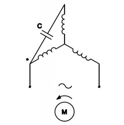 Ký tự * –> thay đổi kết nối giữa đầu nối sao của tụ điện cho phép đảo chiều quay của động cơ.