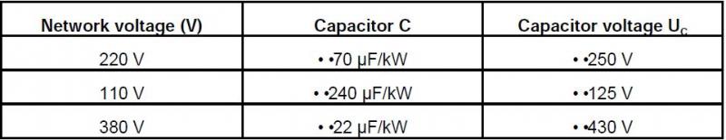 Dưới đây là bảng tham khảo giá trị điện dung của tụ điện. chúng ta phải xem xét kỹ điện áp làm việc cũng như điện áp kết nối để tránh làm hư hỏng động cơ hay bản thân tụ điện.