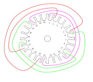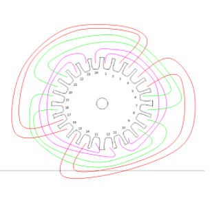 Đó là xong cách bố trí các pha trên stator và các bạn có thể quấn dây bố trí theo như thế tuy nhiên bố trí như thế sẻ hao dây quân hơn bởi vì mình phải làm khuôn rộng mình sẻ bố trí dây quấn lại như sau nhưng cũng theo cách trên nhưng trong quá trình mình quấn dây vào stator mình sẻ bẻ dây theo cách sau