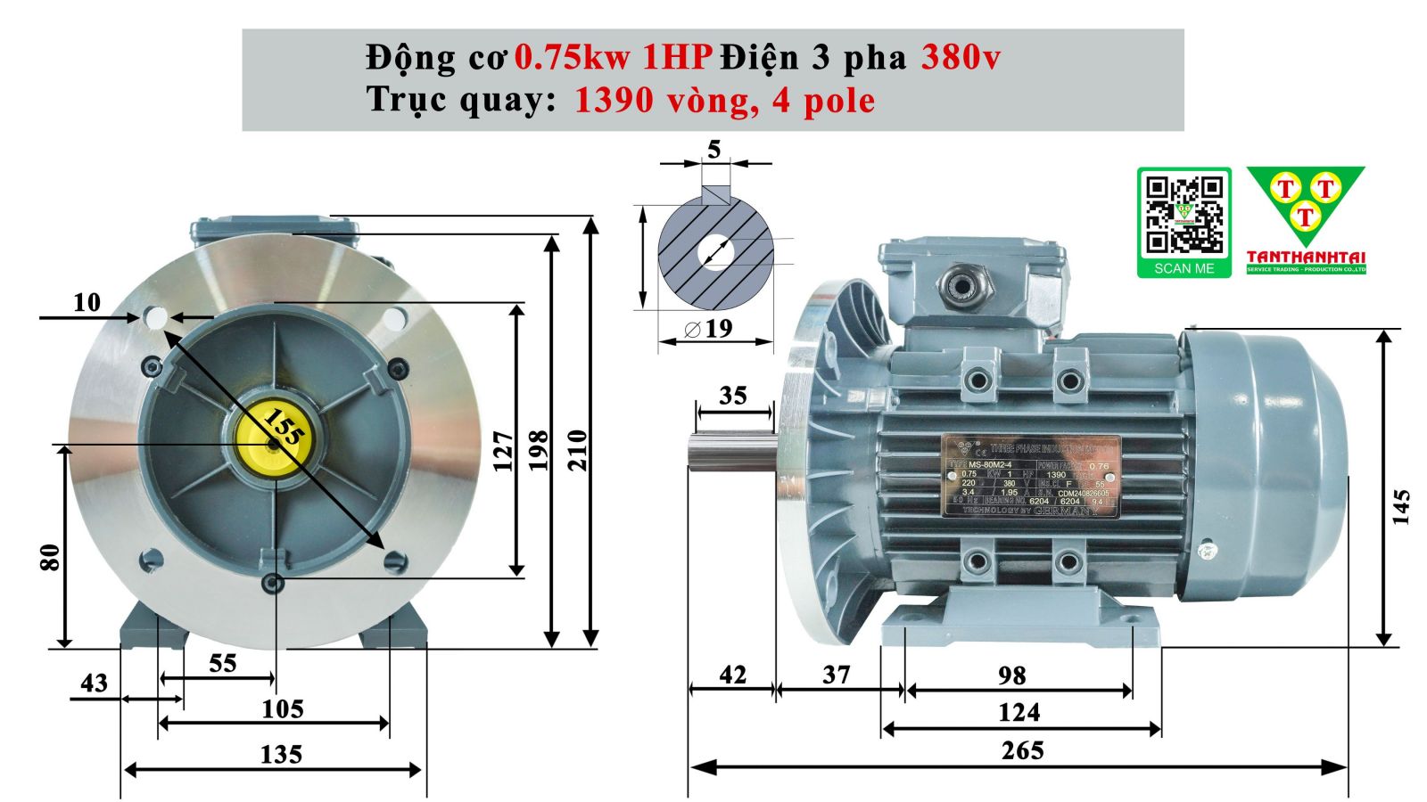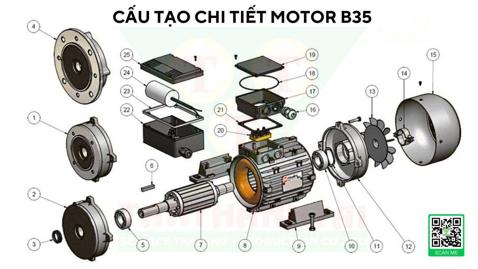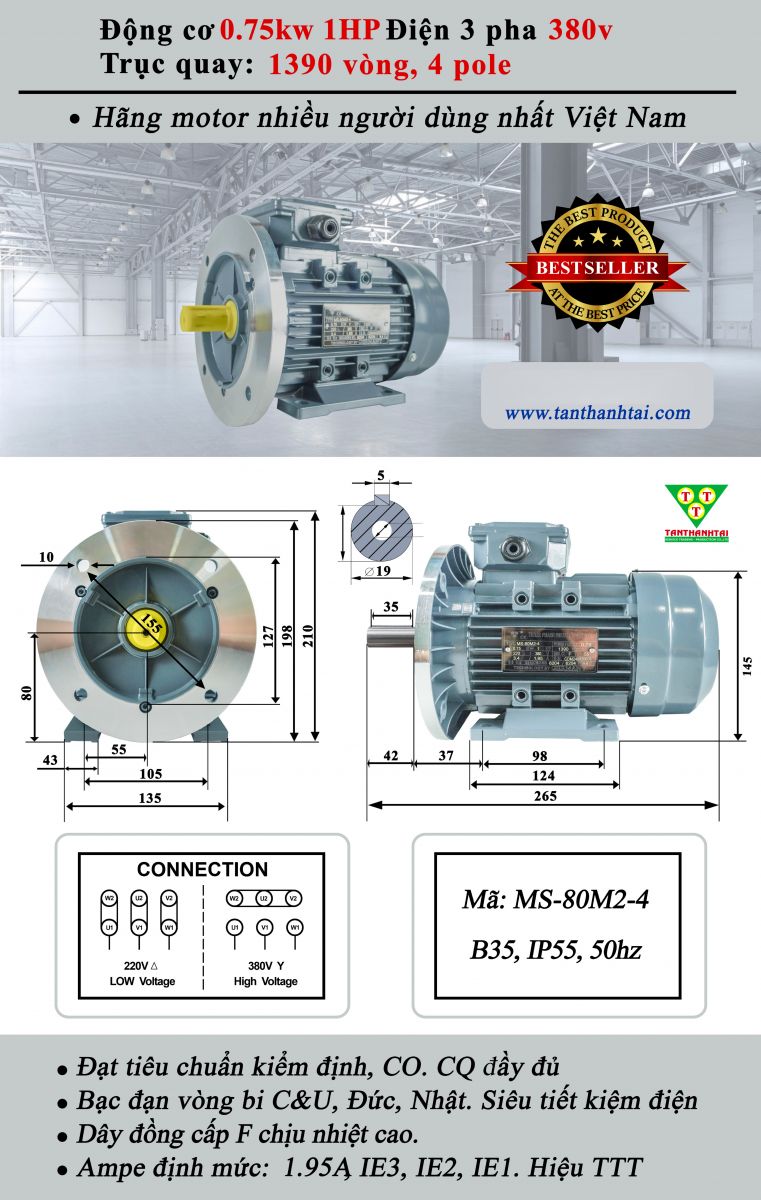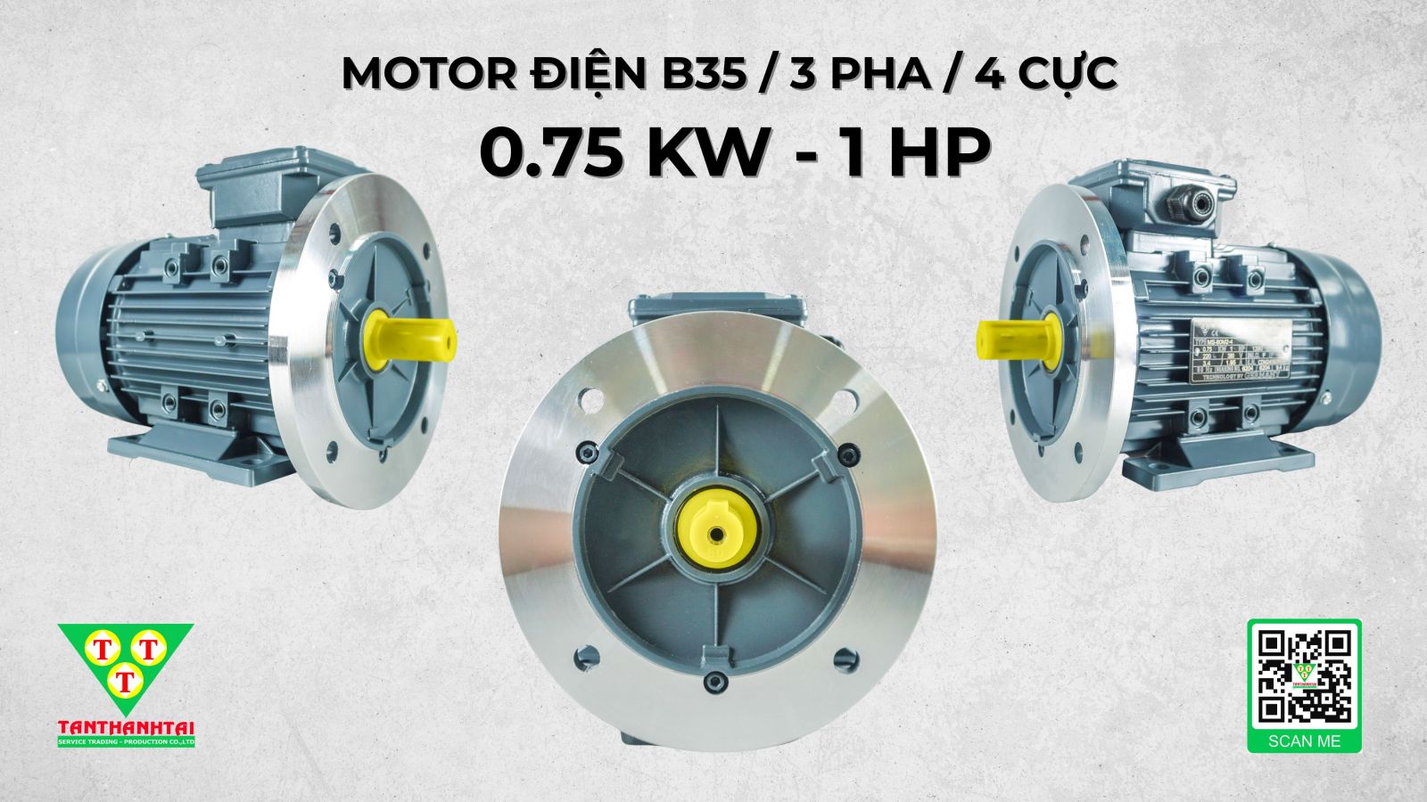 • -  Với thiết kế chuẩn quốc tế, vận hành ổn định, tiết kiệm điện và tuổi thọ cao, Motor điện 0.75 kW - 1 HP 3 Pha chân đế – mặt bích B35 là lựa chọn tối ưu cho doanh nghiệp.