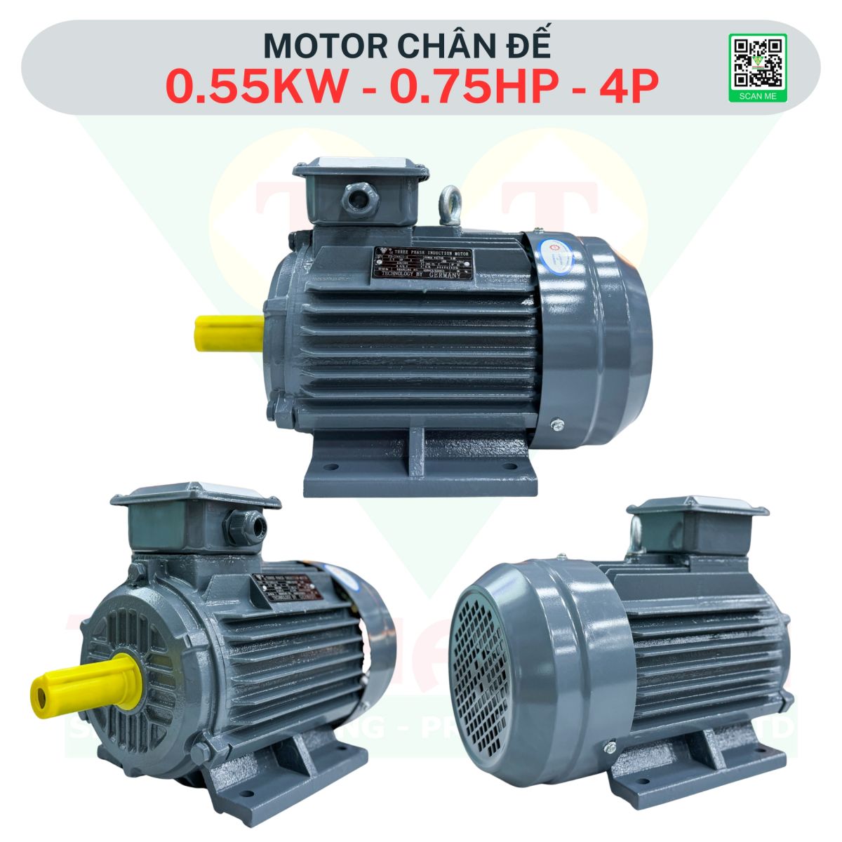 Động cơ điện 0.55kW (0.75HP) điện 3 pha 380V, tốc độ 1390 vòng/phút, 4 pole, là dòng motor phổ biến nhất hiện nay được ứng dụng rộng rãi trong nhiều lĩnh vực sản xuất, công nghiệp và dân dụng. Đây là sản phẩm thuộc thương hiệu Tân Thành Tài (TTT) – đơn vị được nhiều khách hàng tin tưởng và lựa chọn tại Việt Nam.