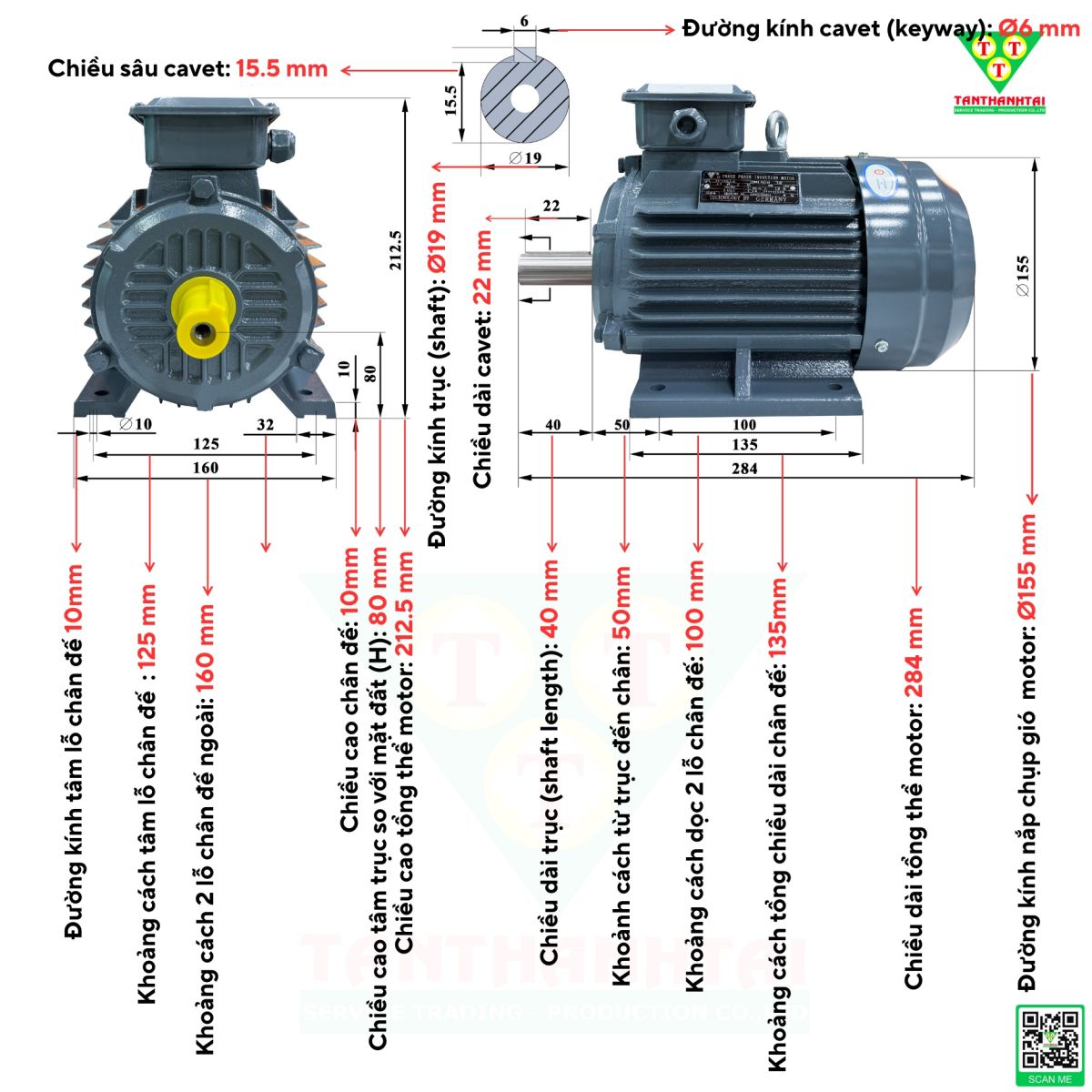 • Chiều dài tổng thể motor: 284 mm