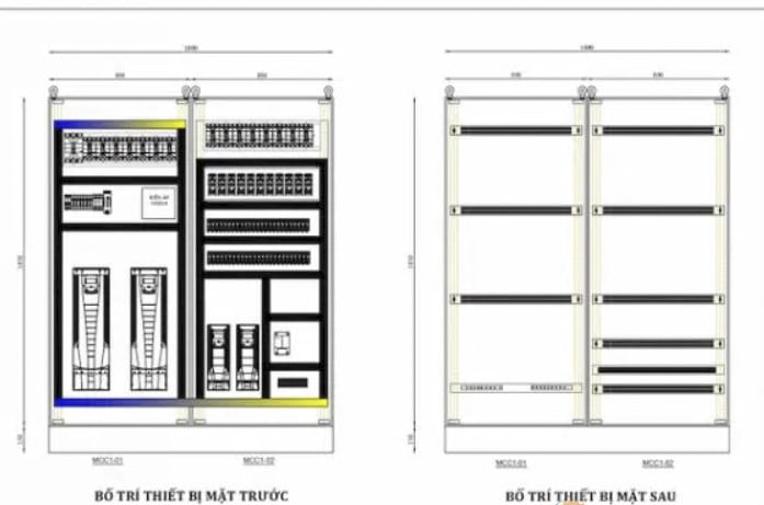 · Các bộ dụng cụ điện như: khởi động từ, aptomat, công tắc tơ đóng cắt sẽ được đặt cùng hàng và ở dưới cùng.