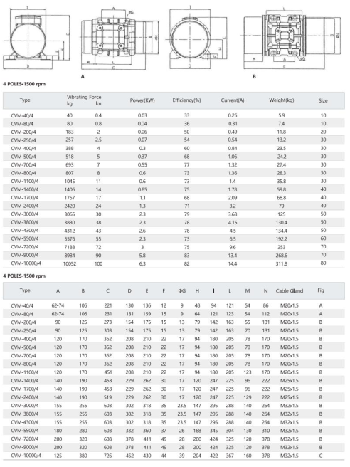 Đây là dòng motor rung công suất lớn trong phân khúc tầm trung – đáp ứng tốt cho các hệ thống đòi hỏi độ rung cao như bàn rung bê tông, sàng đá cỡ lớn, phễu chứa vật liệu nặng.